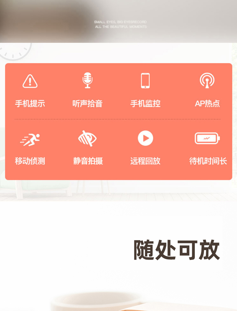 商品名称:乔安(JOOAN)微型监控摄像头迷你小型无线监控器家用摄像机夜视高清手机远程监控电池免插电 1080P