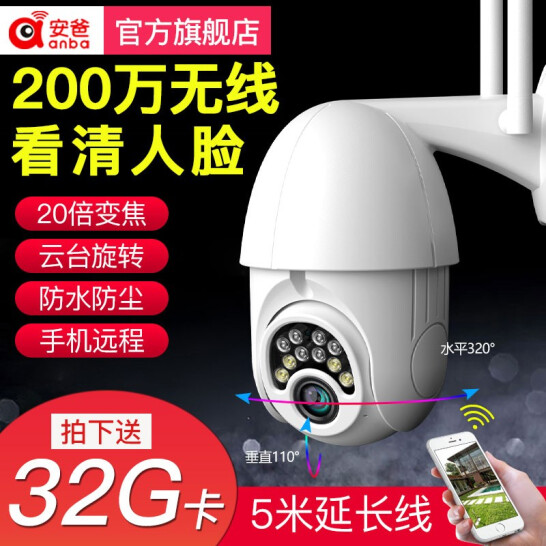 商品名称:安爸 监控摄像头无线防水 200万球机室外旋转日夜全彩WIFI手机远程查看家用摄像头